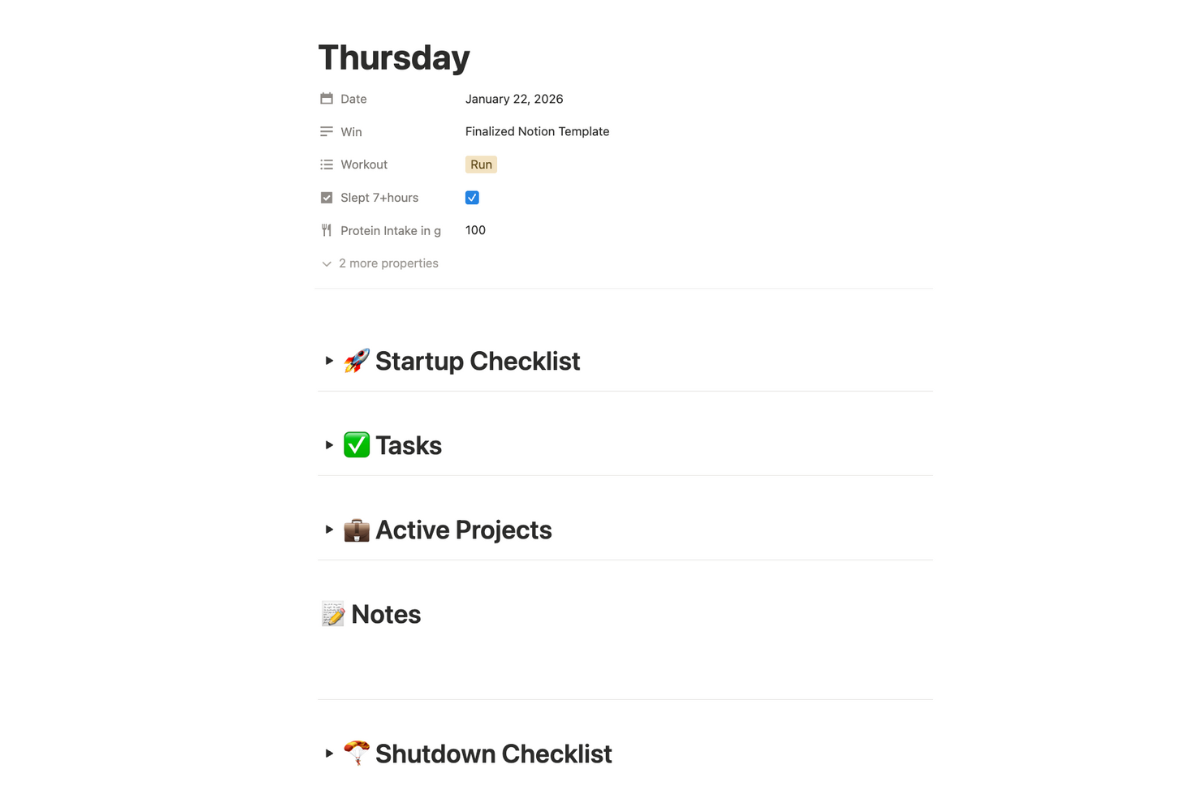 Built-in daily pages with startup and shutdown checklists to ground your workday.