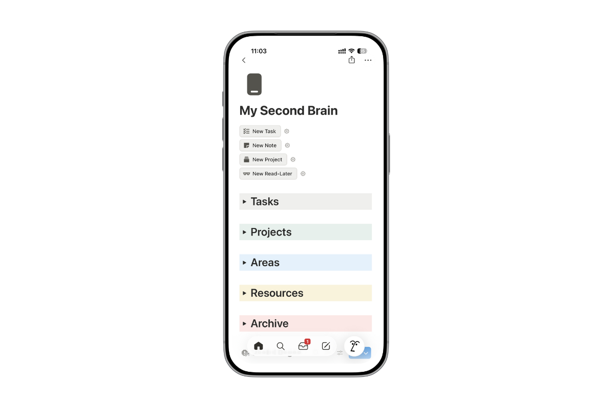 Organize everything into Projects, Areas, Resources, and Archive — so the information you truly need is always front and center.
